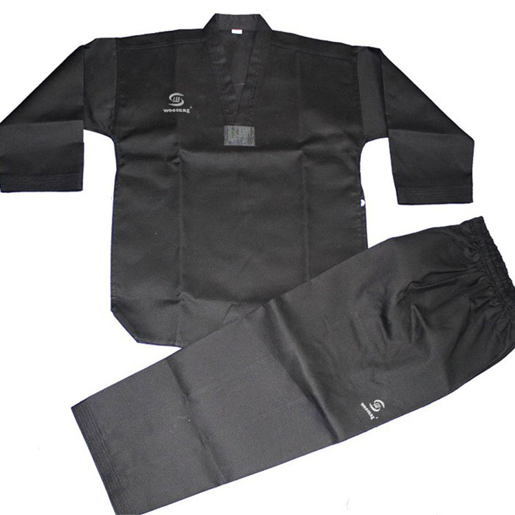 Pakaian Seragam Taekwondo Hitam WOOSUNG merangkumi pesona unik Taekwondo dalam warna hitam klasik. Sebagai kilang seragam Taekwondo di China, kami pakar dalam menyediakan penyelesaian pakaian berkualiti tinggi untuk latihan, sparring dan persembahan.
