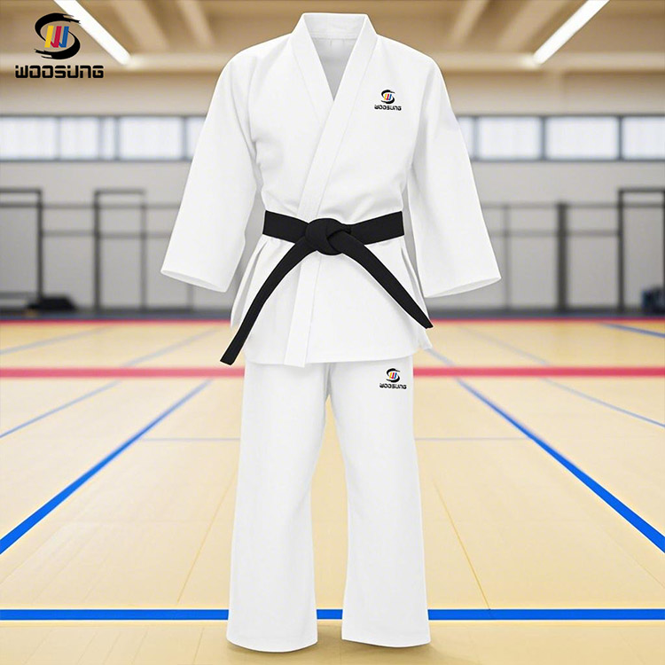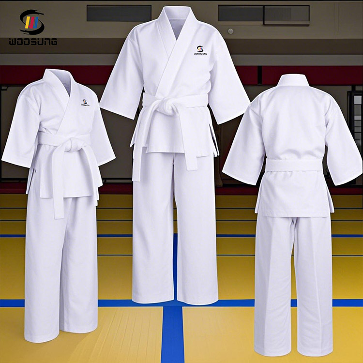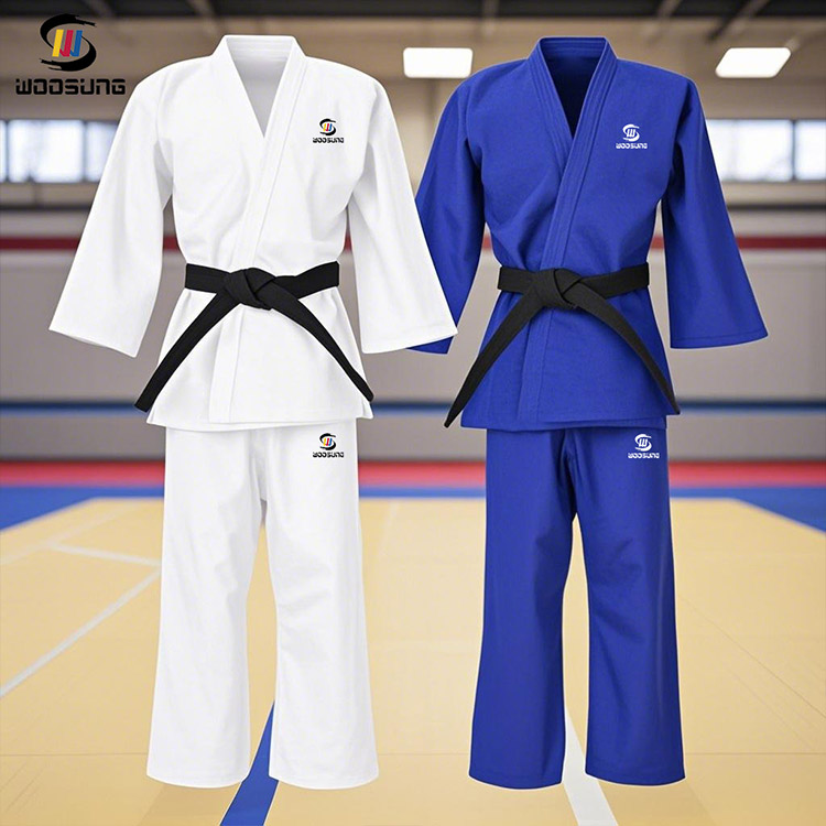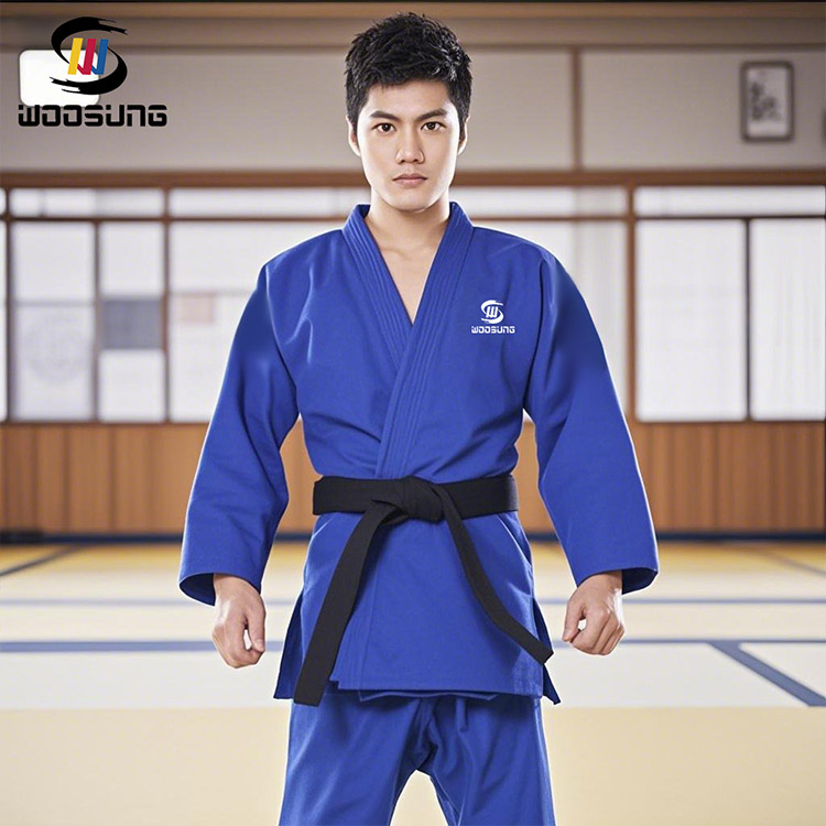 Jaket ini mempunyai potongan lilitan dengan langsir yang sangat baik; seluar dilengkapi dengan tali pinggang boleh laras. Sama ada teknik memusing, menendang atau mendarat, pakaian seragam judo WOOSUNG memastikan pergerakan tanpa had.