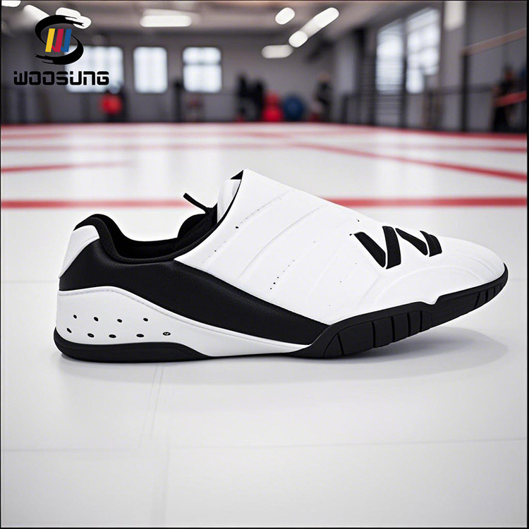 WOOSUNG®Kasut PU Karate diperbuat daripada bahan PU (Polyurethane) berkualiti tinggi, mengimbangi reka bentuk ringan, fleksibiliti dan ketahanan.