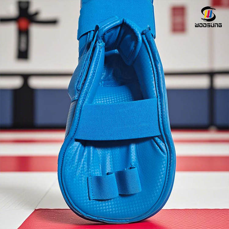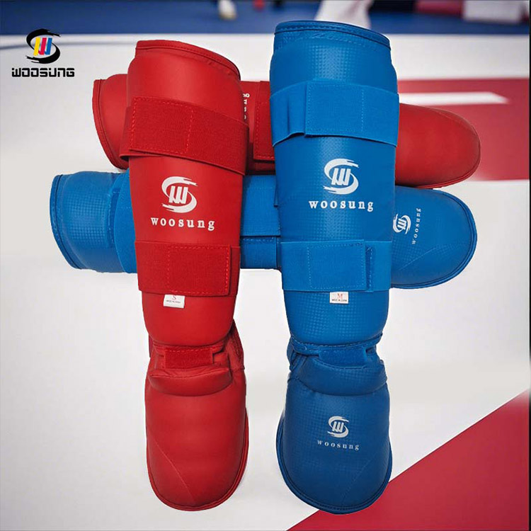 Shin Guard Karate Up to Knee WOOSUNG direka untuk pertarungan karate intensiti tinggi. Menggabungkan penyelidikan ergonomik dan biomekanikal, struktur separuh but yang unik dan sambungan atas lutut memberikan perlindungan menyeluruh untuk tibia, punggung kaki dan sendi lutut.
