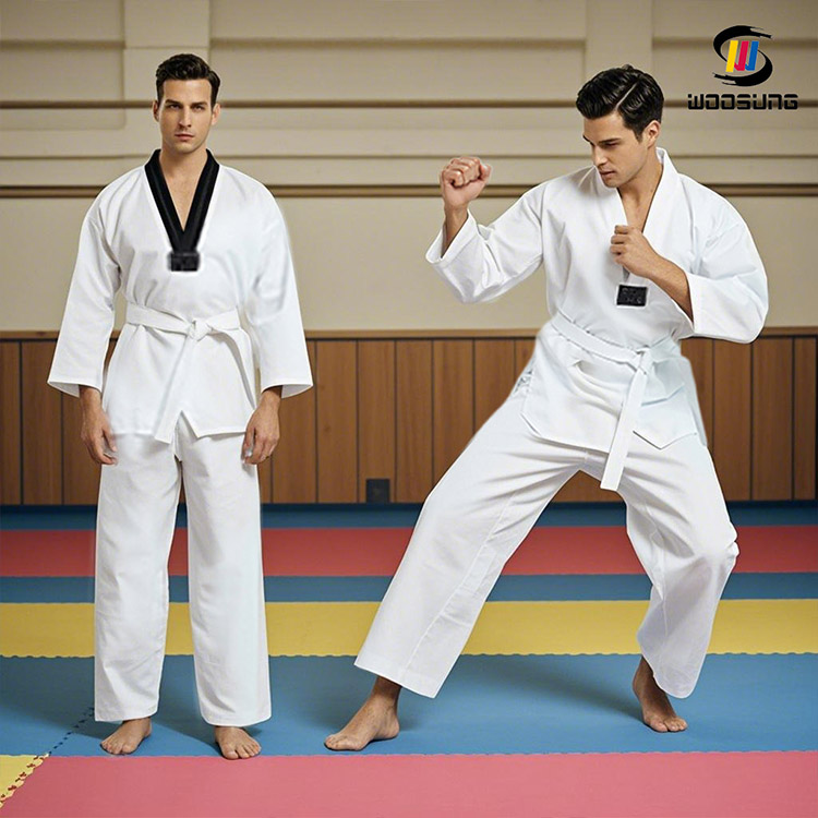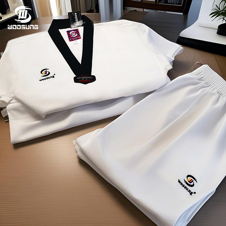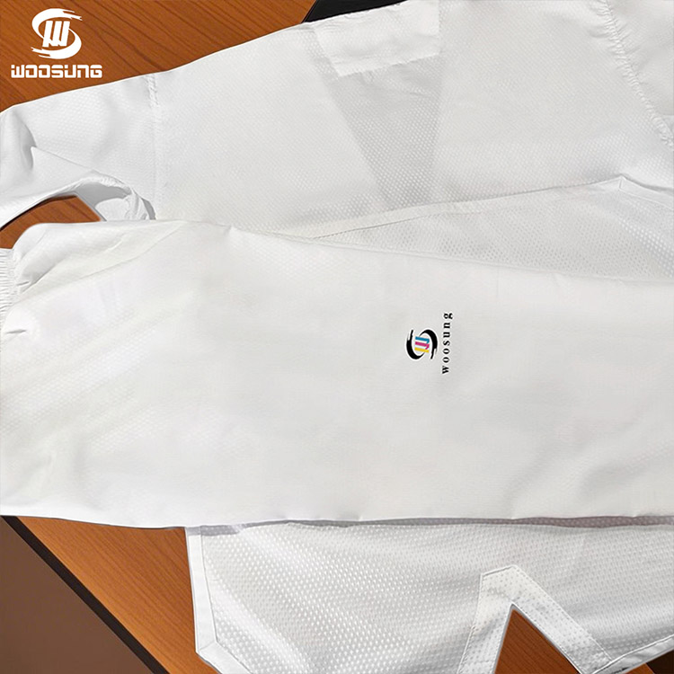 Uniform Taekwondo WOOSUNG dengan Mesh (Pengilang / Pembekal China) ialah pakaian seragam berprestasi tinggi yang direka khusus untuk latihan profesional dan persekitaran pertandingan. Dengan menggabungkan panel jejaring yang sangat bernafas di kawasan utama—digabungkan dengan fabrik campuran kapas-poliester dan potongan sukan—seragam ini mencapai keseimbangan yang unggul antara keselesaan, keupayaan menyerap lembapan dan ketahanan.